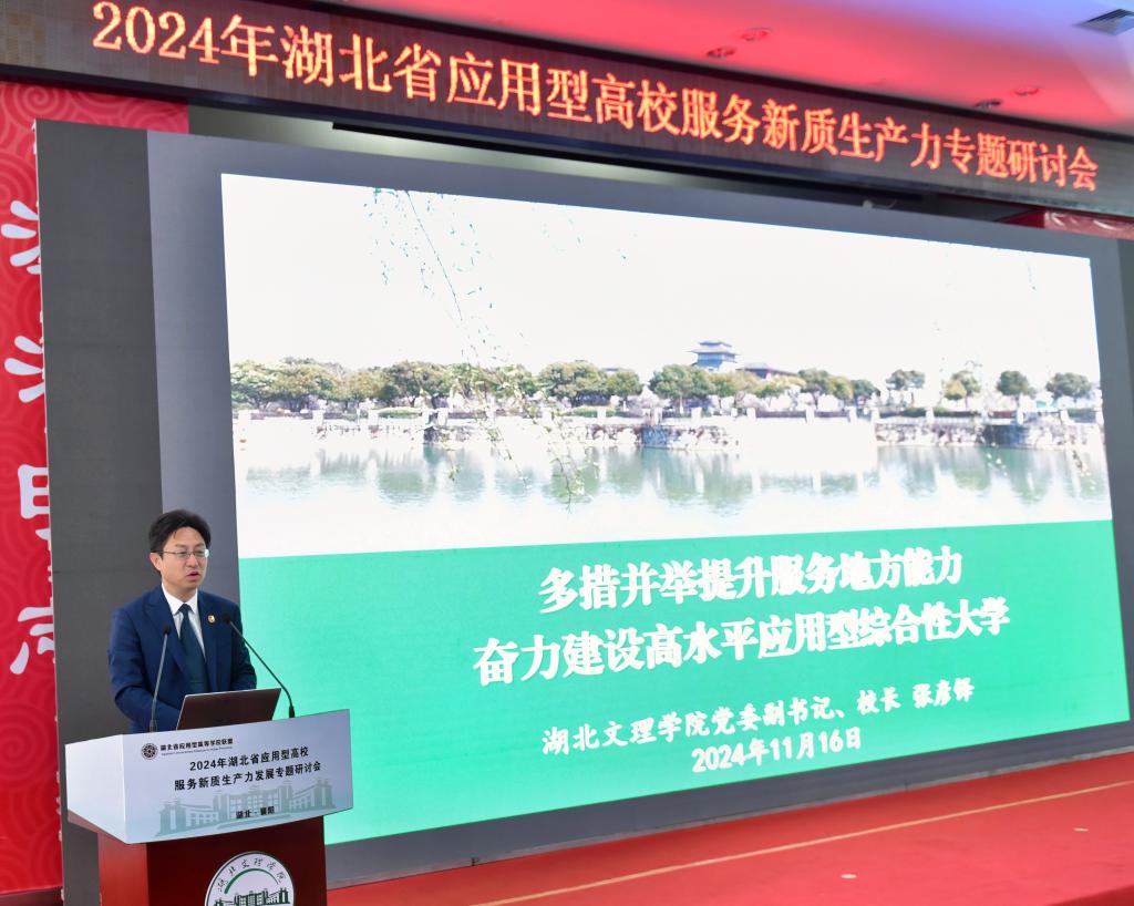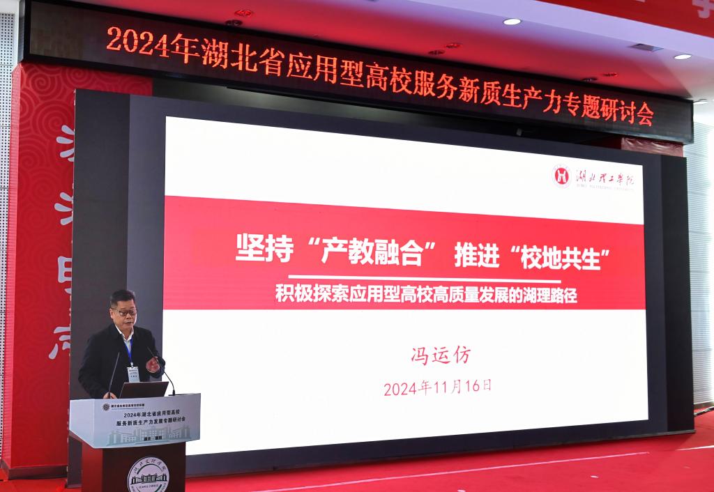 (新闻网记者 蔡晨)11月15日至16日,2024年湖北省应用型高校服务新质生产力发展专题研讨会在我校举行。省教育厅副厅长戴伟出席研讨会并讲话,学校党委书记吴超仲主持开幕式并致欢迎辞,湖北省应用型高校联盟理事长、湖北理工学院党委副书记、校长李社教作联盟工作报告。省教育厅发展规划处处长闵石键,高教处处长崔锋出席研讨会。