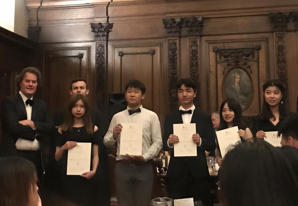 江蓝天(右三)领取商科结业证书